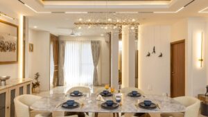 This modern apartment was conceptualized to reflect a bold, luxurious aesthetic paired with functional spatial planning. Every element, from lighting to finishes, was chosen to create a rich, contemporary environment.