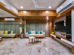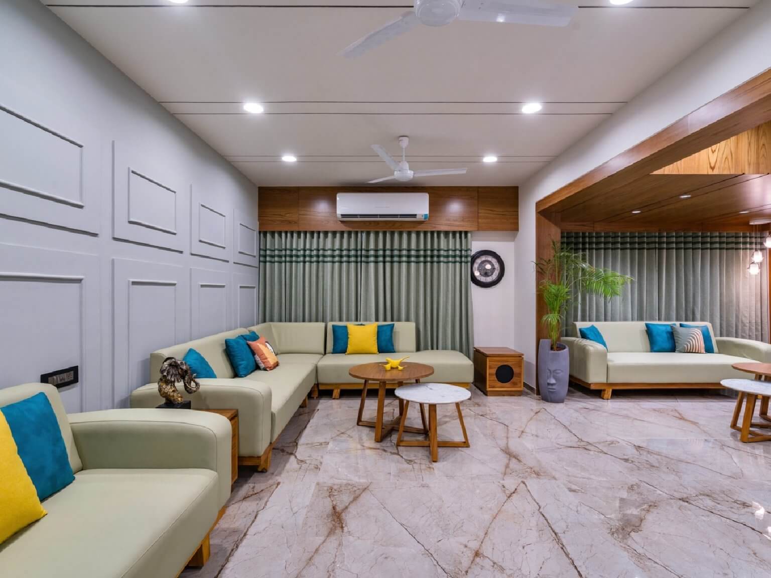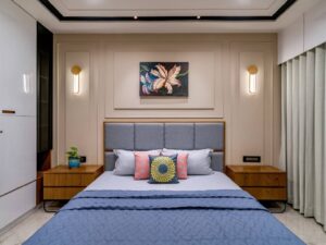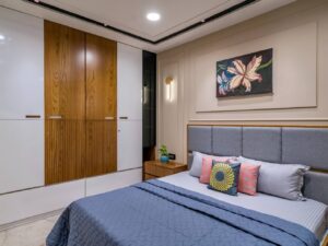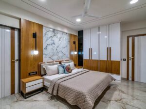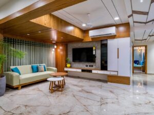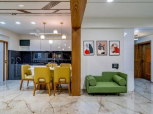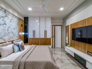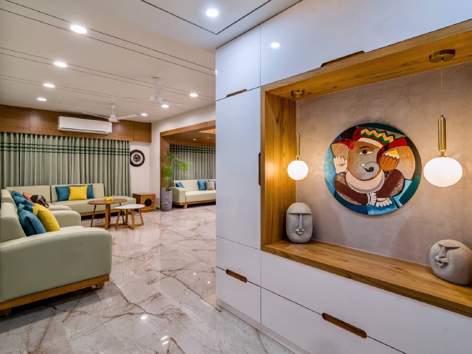 A luxurious 3BHK flat was designed with an emphasis on modern aesthetics and comfort. The color palette was kept neutral with accent walls and custom furniture pieces to enhance visual appeal.